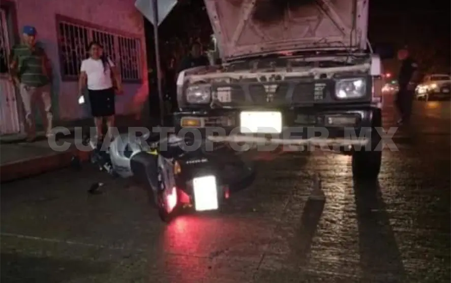 Durante la noche del jueves en el municipio de Tapachula sobre la 25.ª Oriente y 5.ª Norte sucedió una colisión entre una motocicleta y una camioneta de reparto de agua, dejando a dos adolescentes con lesiones.