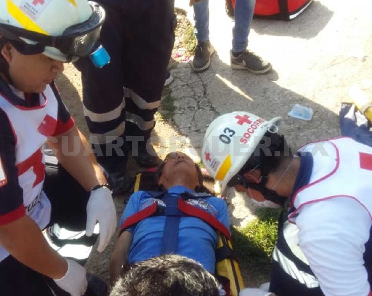 Paramédicos de la Cruz Roja Mexicana arribaron para la valoración de Molina Gómez que se encontraba en la acera del lugar, ya que los vecinos lograron llevarlo a la superficie.