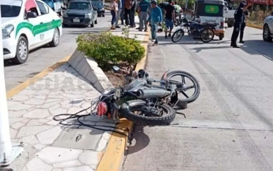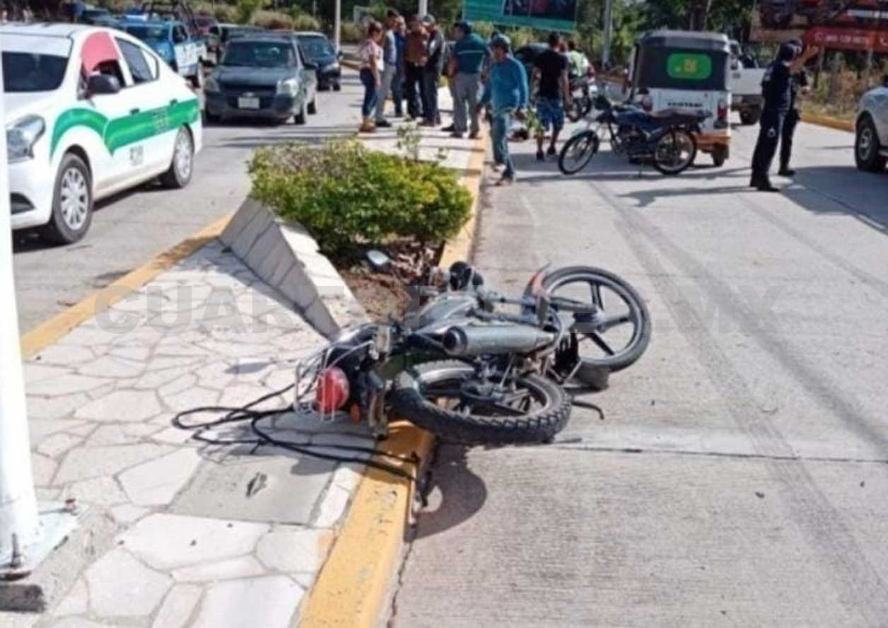 Testigos narraron que repentinamente el motociclista se fue directamente contra el camellón, en una situación que le hizo salir proyectado, mientras que su “caballo de acero” terminó dañando a un automóvil compacto que pasaba por la zona.