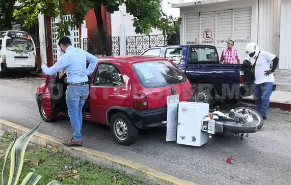De acuerdo con datos recabados, la conductora de una camioneta marca Toyota tipo Avanza color blanco, con placas del estado de Chiapas, impactó a un motociclista que a su vez terminó debajo de una unidad marca Chevrolet tipo Chevy color rojo, que se encontraba estática.