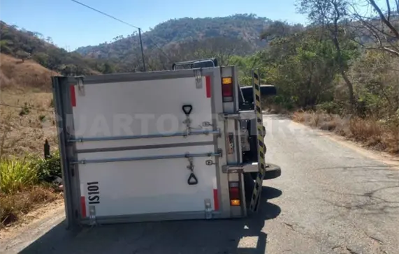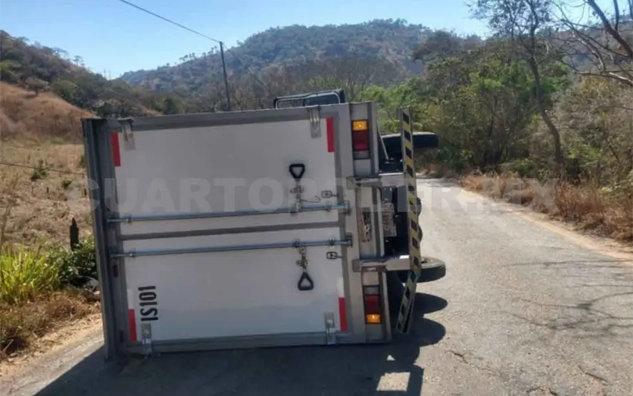 Autoridades mencionaron que la unidad de la marca Isuzu, con placas DC6481A, resultó con daños en el costado donde quedó volcada. Al parecer el exceso de velocidad había sido la causa del accidente.