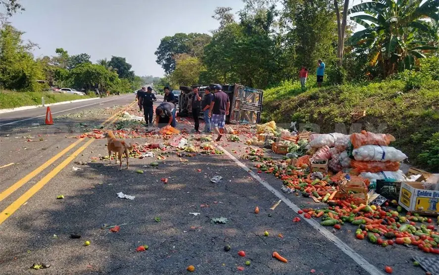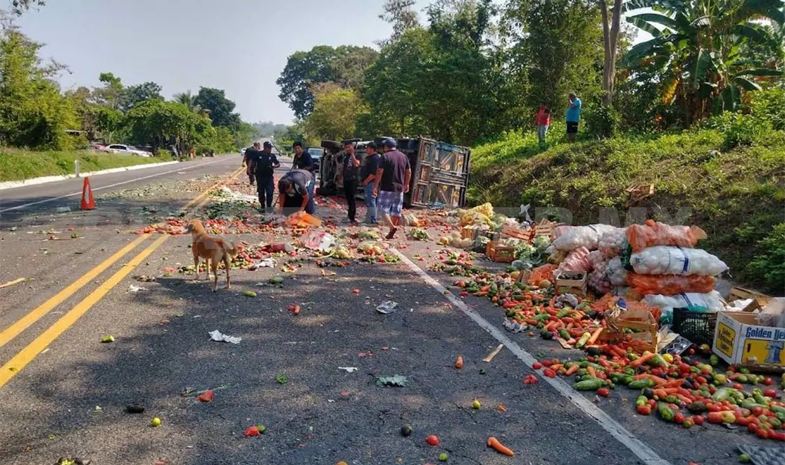La volcadura de una camioneta Nissan NP300 de color blanco, cargada de frutas y verduras, volcó sobre el tramo carretero Frontera Hidalgo-Metapa de Domínguez, en la demarcación de Metapa, lo que dejó cuantiosas pérdidas aunque no hubo lesionados.