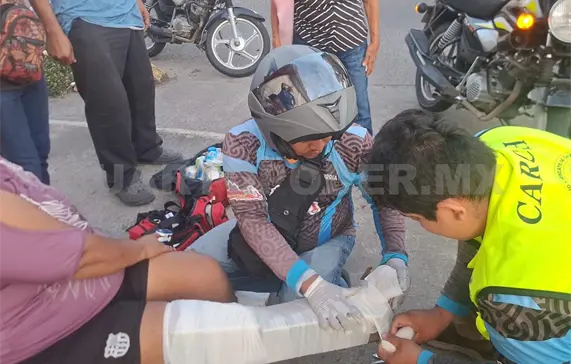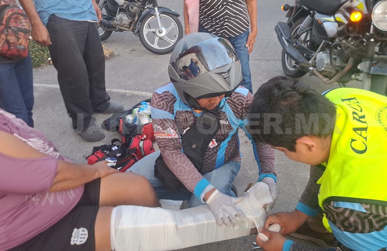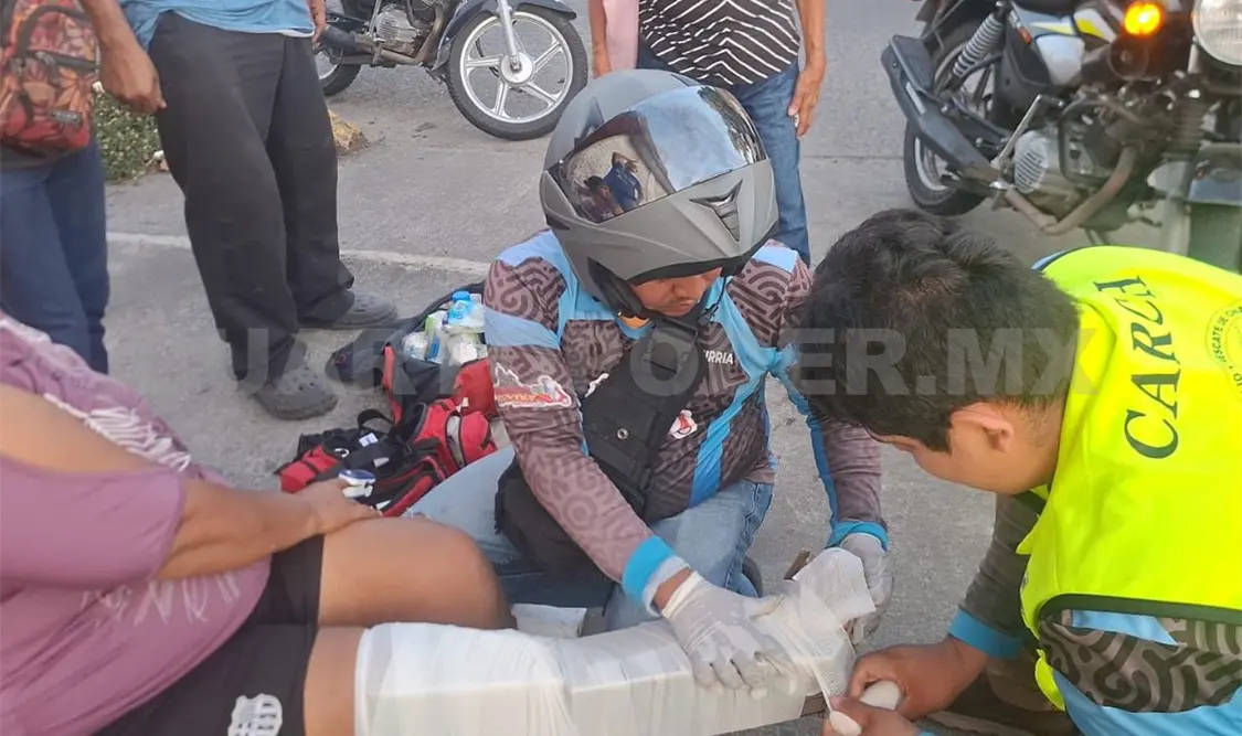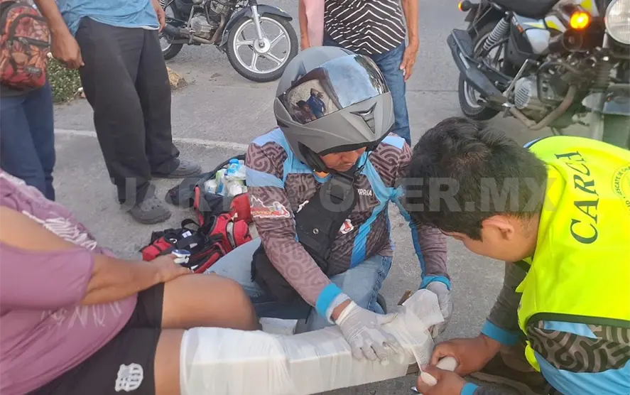 Ante el reporte del percance acudieron paramédicos del Club de Auxilio y Rescate de Chiapas (Carch) y de Protección Civil (PC), quienes luego de revisarla determinaron que presentaba una lesión en la pierna derecha, por lo que fue trasladada a la institución médica.