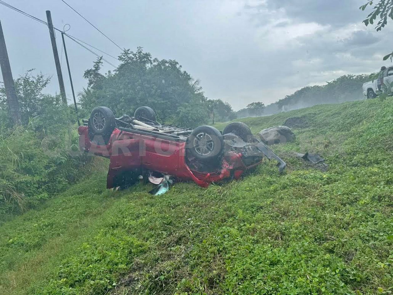 El alcalde de Mapastepec, Amando Espinosa Cruz, resultó milagrosamente ileso, luego que la camioneta en que se desplazaba se salió de la carretera y dio varias vueltas, quedando con las llantas hacia arriba.