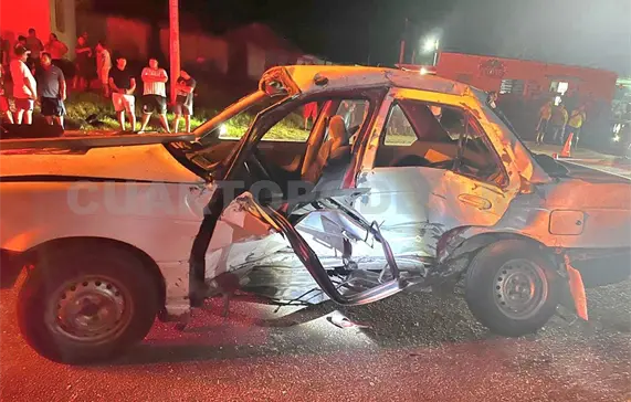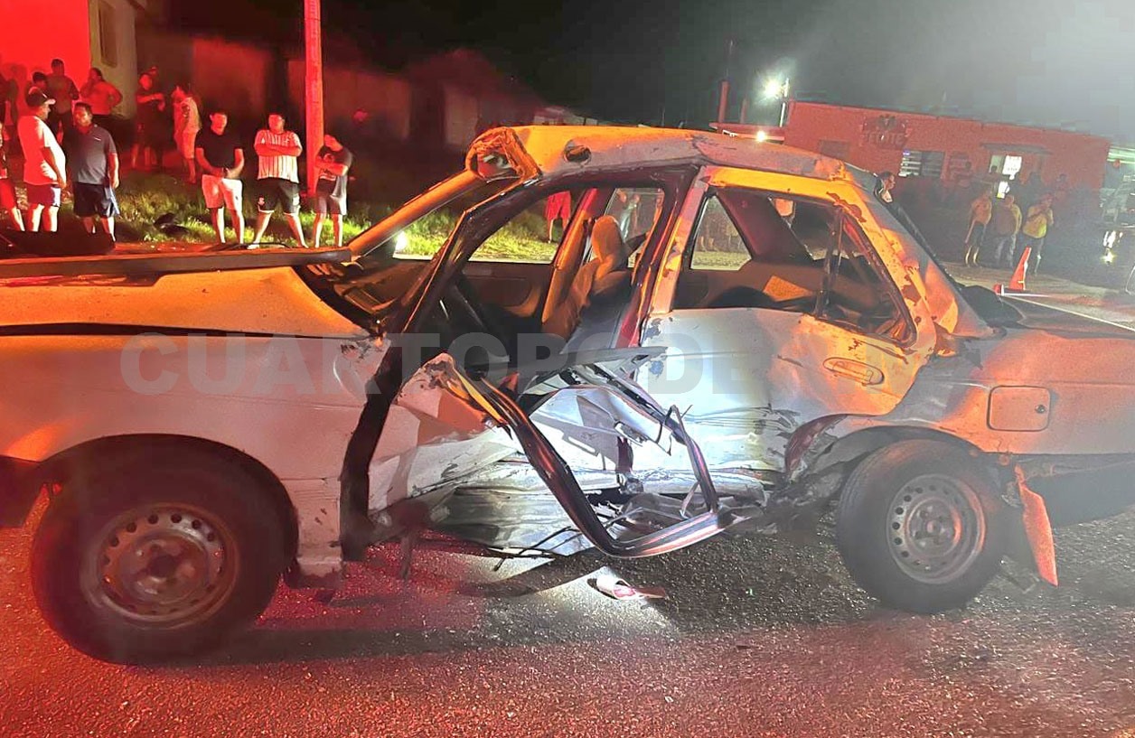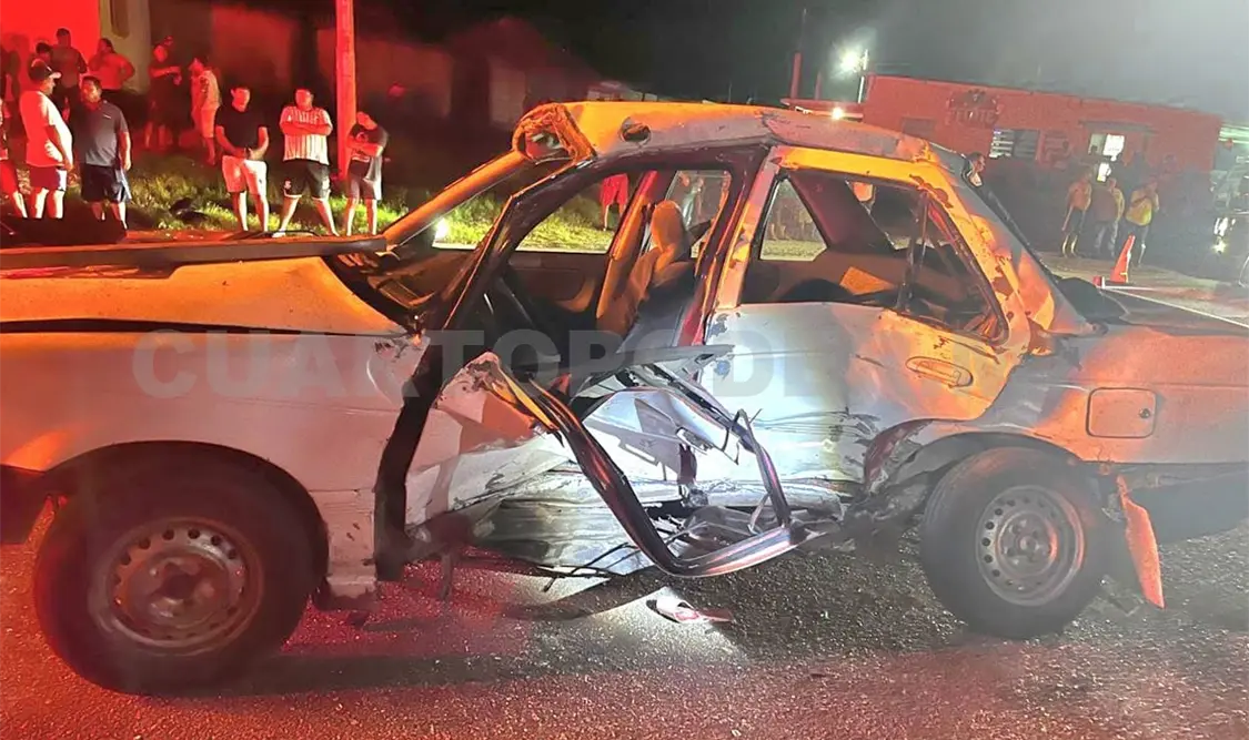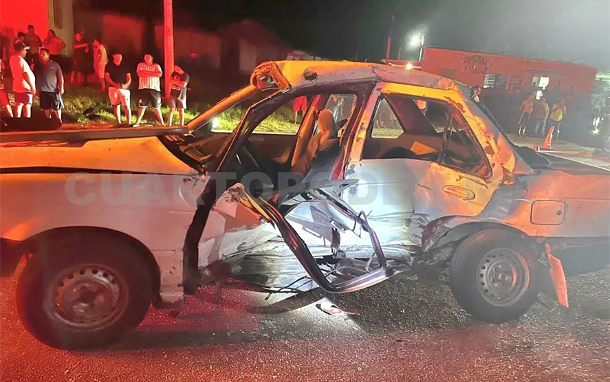El fuerte choque provocó severos daños en ambas unidades, principalmente en el costado y la parte frontal del sedán, el cual quedó atravesado parcialmente sobre la cinta asfáltica.