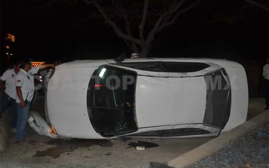 Dos hombres que viajaban a bordo de un automóvil fueron valorados por paramédicos luego de sufrir un aparatoso accidente la noche del martes en el libramiento Norte, como referencia a la altura de las instalaciones de Protección Civil Municipal.