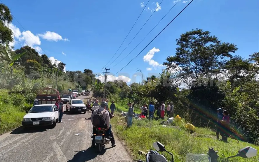 Una intensa movilización de elementos de seguridad y de socorro se registró sobre la carretera Ocosingo-Toniná, a la altura de la localidad Queshil, donde ocurrió una aparatosa volcadura.
