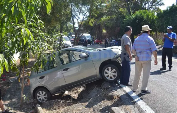 De acuerdo con las autoridades, ayer por la mañana un automóvil Nissan March color gris que circulaba en sentido a Copoya perdió el control en una curva cercana al hospital San Lucas.