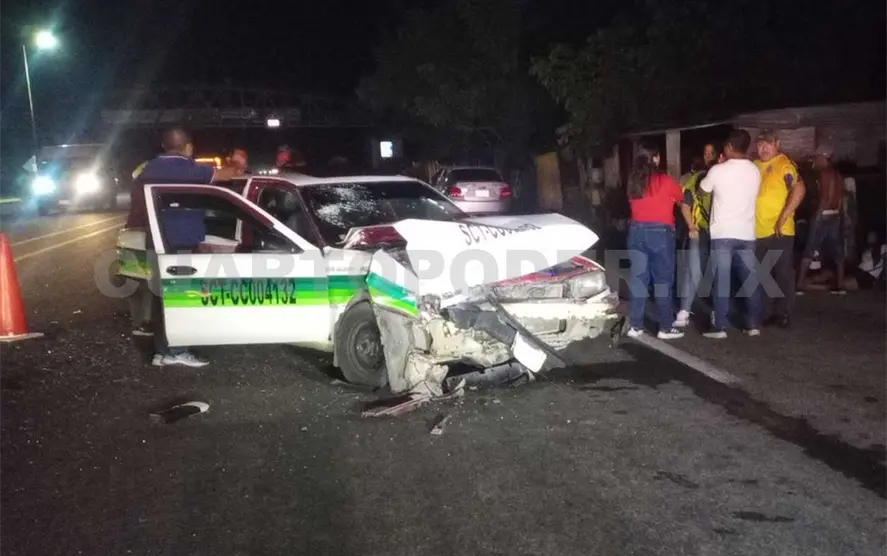 Ocho lesionados, tres de los cuales requirieron hospitalización, y daños materiales por varios miles de pesos, fueron el saldo de un aparatoso accidente entre un taxi y un automóvil particular en el tramo carretero Tapachula-Puerto Madero.
