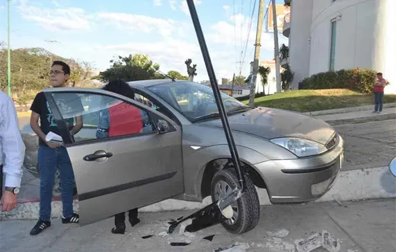 Justo en ese momento, metros adelante del colectivo iba el automóvil marca Ford tipo Focus, color gris, con placas de circulación DST9346 del estado de Chiapas, que intentaba ingresar a la colonia.