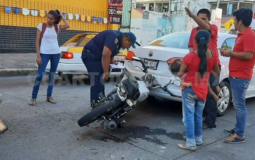 Ello originó que se impactaran en la parte trasera de un vehículo Volkswagen Jetta, color blanco y atrás de ellos chocó una camioneta Chevrolet S10 amarilla.