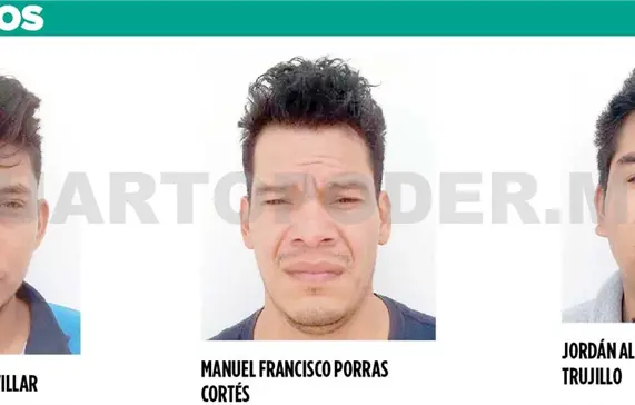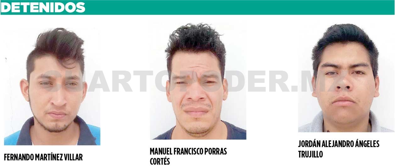Los detenidos, quienes además confesaron participar en una serie de robos a casa habitación y ser narcomenudistas, fueron identificados como Jordán Alejandro Ángeles Trujillo, Manuel Francisco Porras Cortés y Fernando Martínez Villar.