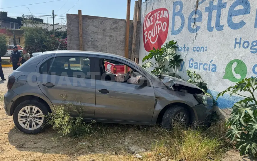 Por ello, se estampó contra la pared de una casa, lo que dejó al automóvil con daños en la parte frontal.