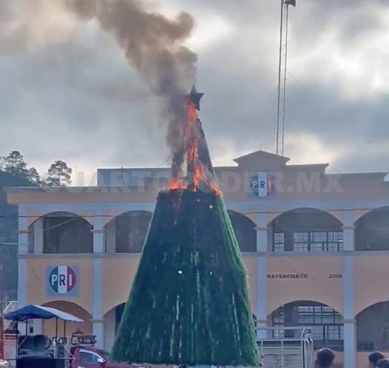 Momentos de alarma y consternación se vivieron en la zona centro de la comunidad de Navenchauc, en Zinacantán, luego de que el árbol de Navidad instalado como adorno principal de la temporada decembrina fuera consumido por el fuego.