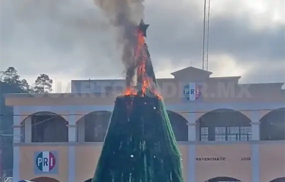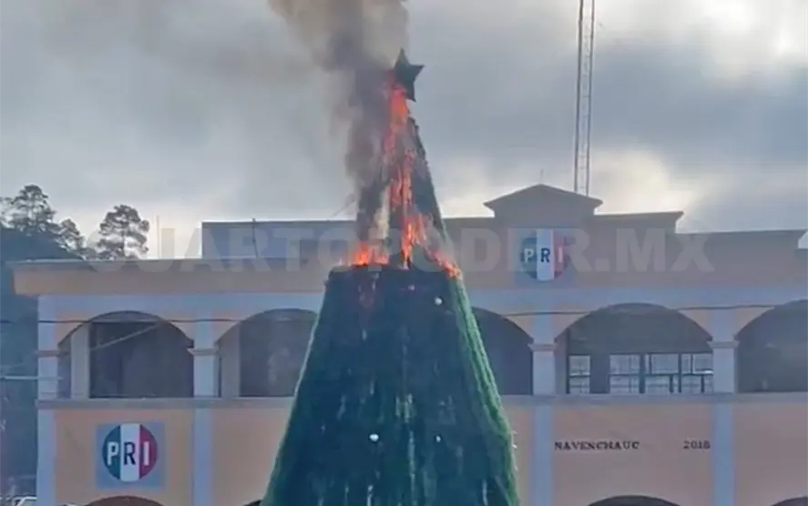 De acuerdo con información proporcionada por autoridades locales, el incendio se habría originado presuntamente a causa de un cortocircuito derivado de fallas en el sistema eléctrico que alimentaba la iluminación decorativa del árbol.