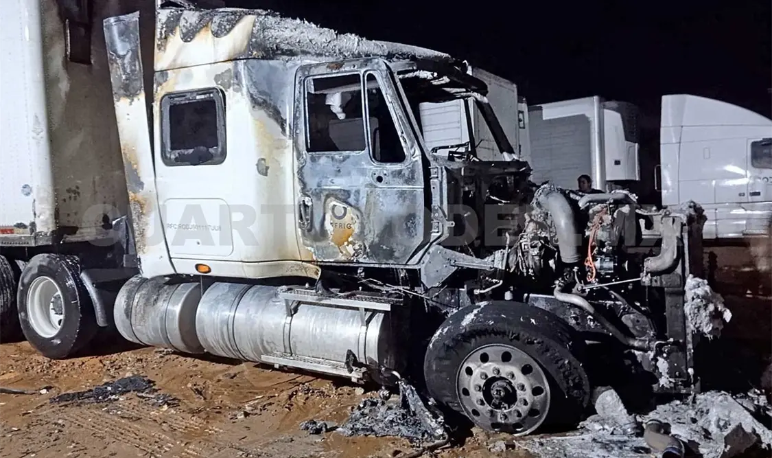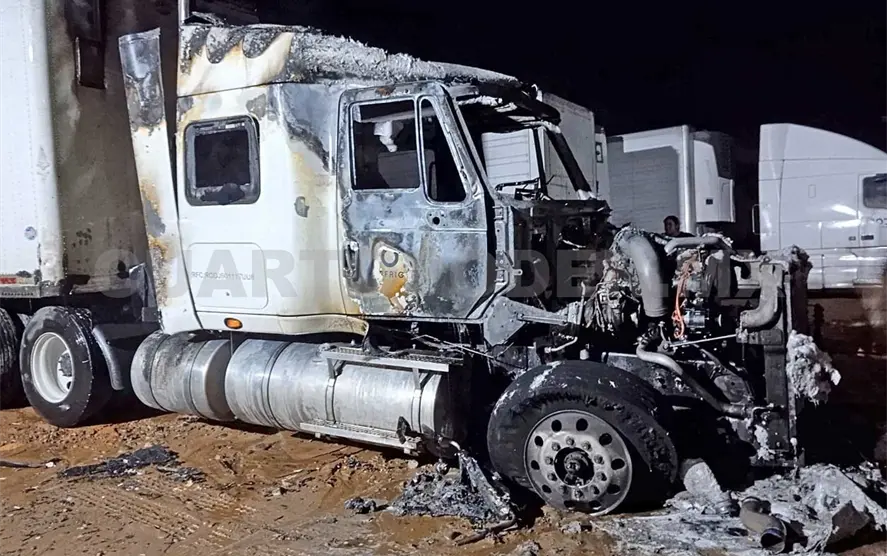 Convertido a chatarra quedó el cabezal de un tráiler al incendiarse en el interior de un estacionamiento de camiones pesados sobre la carretera de Huixtla al ingenio azucarero Belisario Domínguez, la noche del miércoles.