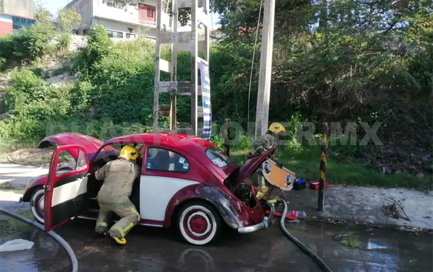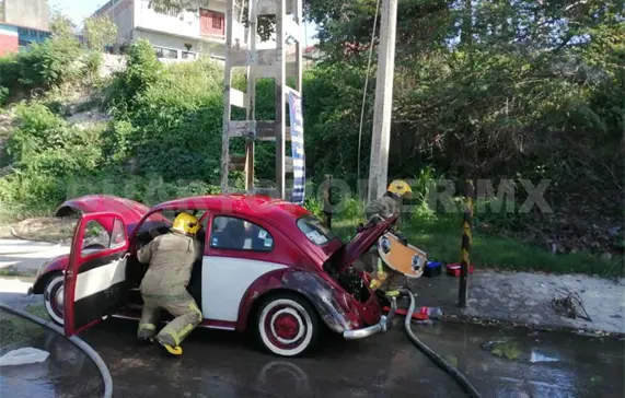 En el lugar se encontraron con un vehículo de la marca Volkswagen tipo Sedán, con láminas de circulación del estado de Chiapas, el cual sacaba una densa humareda en la parte trasera y los sillones comenzaban a arder en llamas.