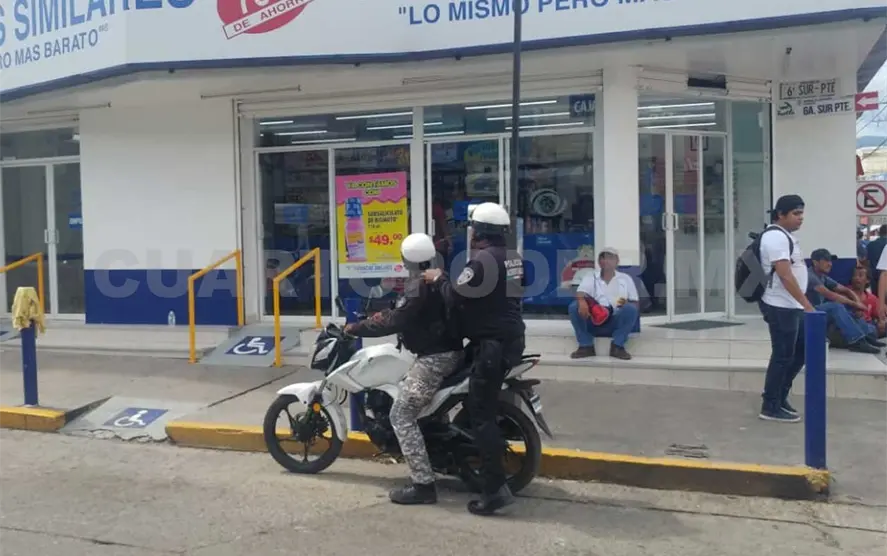 De acuerdo con el reporte de las autoridades policiales, lo anterior ocurrió en la farmacia Similares alrededor de las 15:30 horas en la 3ª calle Poniente y 9ª avenida Sur.
