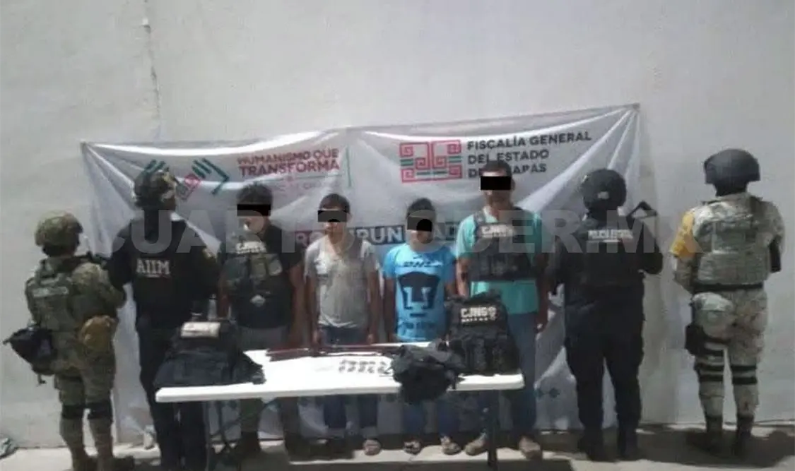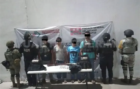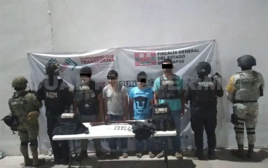 Durante operativos interinstitucionales para garantizar la paz de la ciudadanía la Secretaría de Seguridad del Pueblo (SSP), a través de la Fuerza de Reacción Inmediata Pakal (FRIP) y de la Policía Estatal Preventiva (PEP), en coordinación con la Agencia de Inteligencia e Investigación Ministerial, la Defensa y Guardia Nacional, lograron la detención de cinco integrantes de una célula delictiva en Villa Corzo.