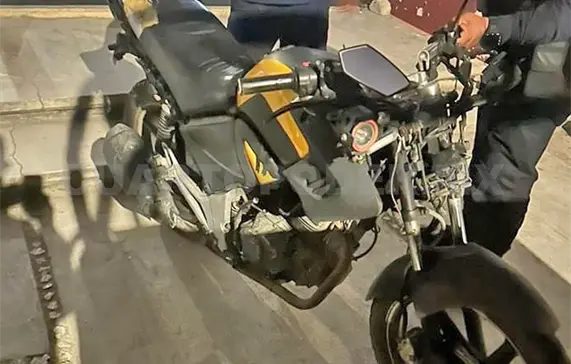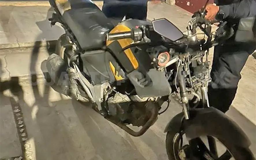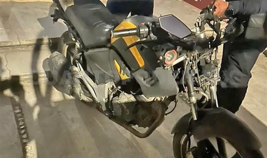 El par de sujetos fue señalado de presuntamente hurtar una motocicleta a un guardia de seguridad en la colonia Explanada del Carmen. Los individuos sorprendieron a la víctima con un arma de fuego, sometiéndolo en el suelo.