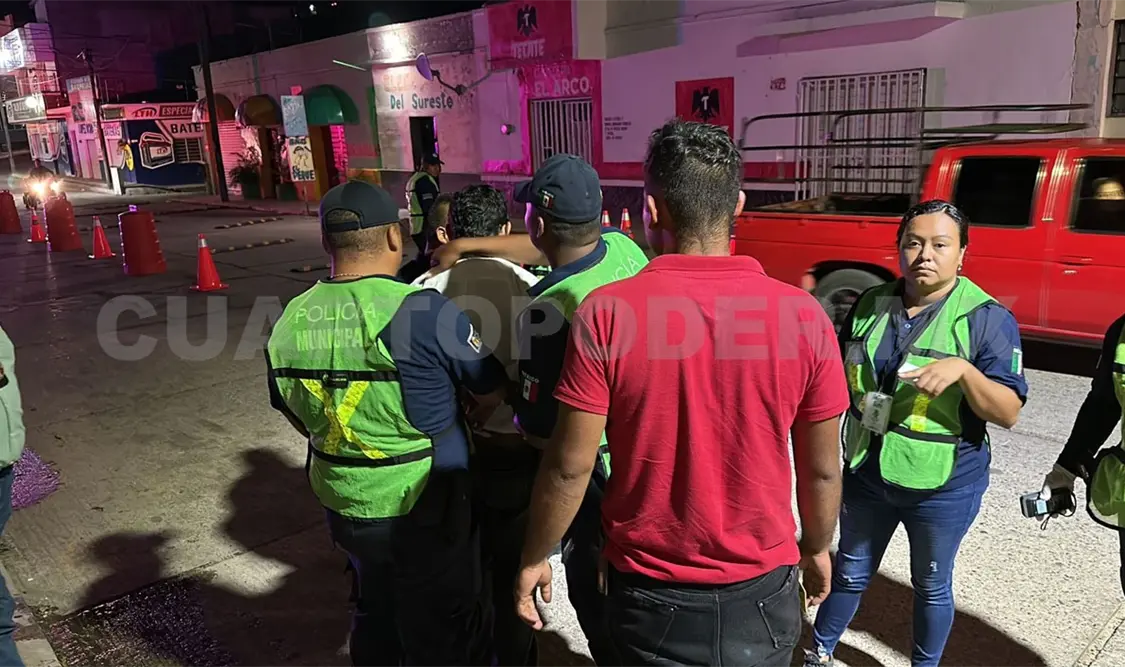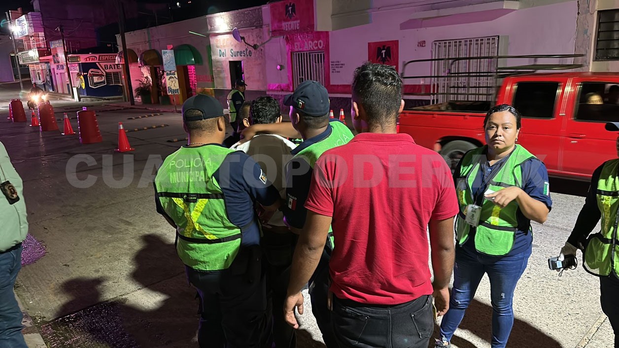 Mientras tanto, agentes de la Policía Municipal aseguraron al sujeto que a pesar de poner resistencia fue escoltado hasta la parte trasera de una patrulla y trasladado hacia los separos municipales por una falta administrativa.