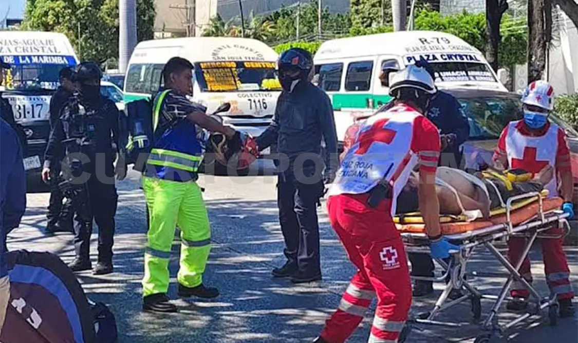 Un sexagenario terminó con múltiples lesiones en sus extremidades luego de ser impactado por un transporte público en modalidad de colectivo, esto sobre el bulevar Belisario Domínguez, frente a la colonia Penipak.