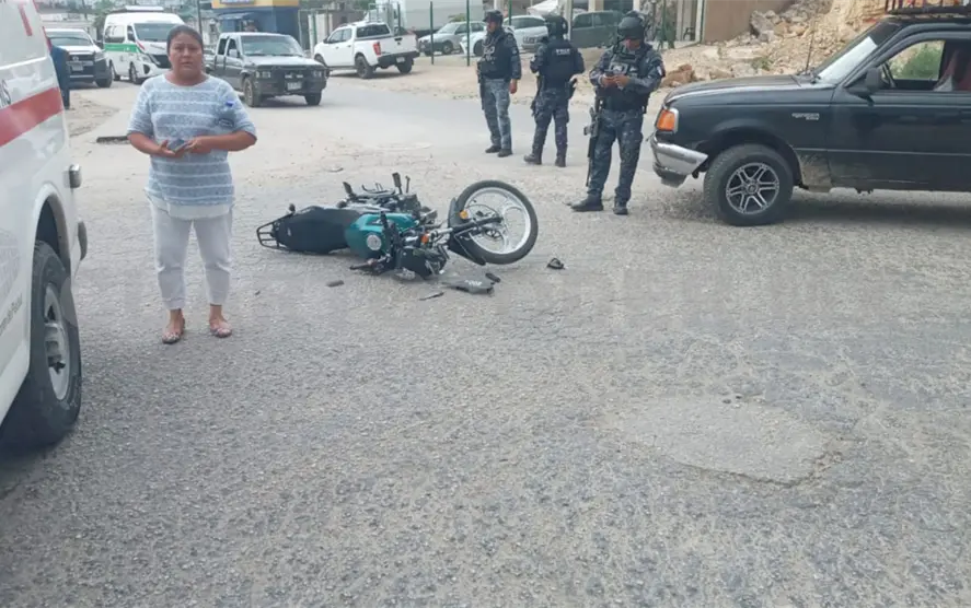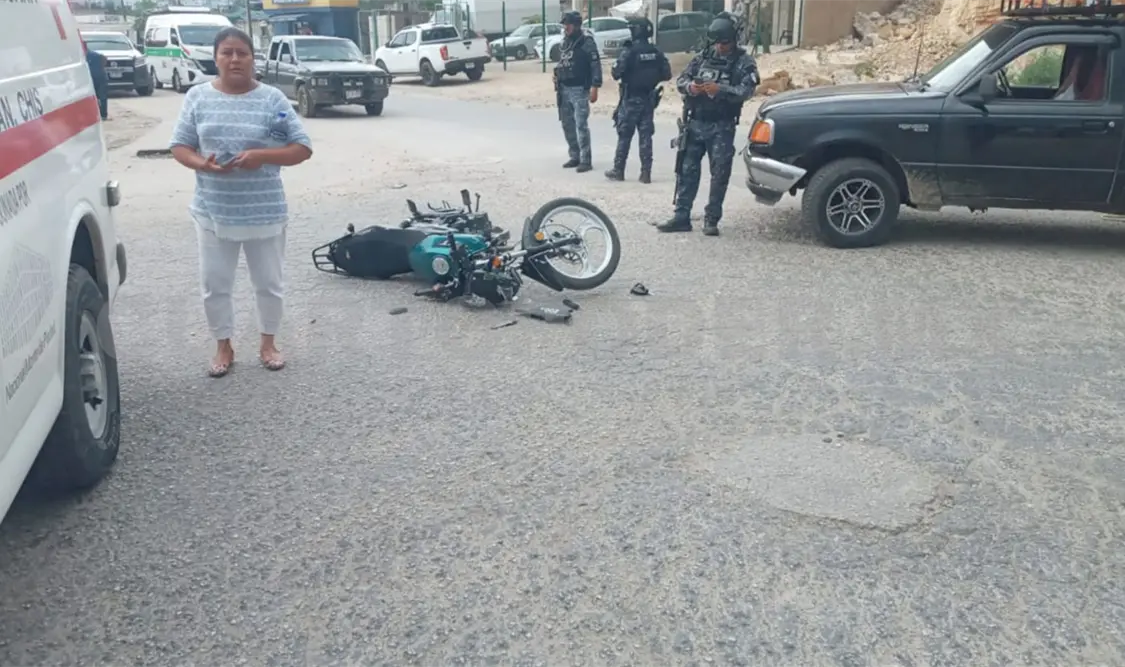 Un menor de edad que transitaba en una motocicleta sobre la carretera a Altamirano, fue atropellado en el cruce con el libramiento de Comitán durante la tarde del viernes, lo que movilizó a los cuerpos de emergencia.