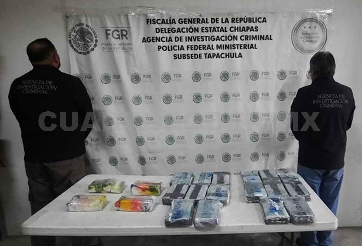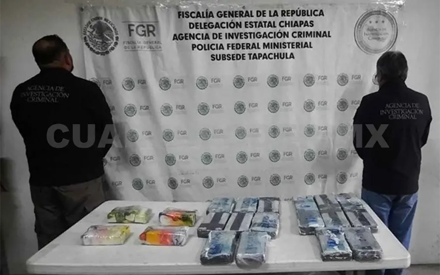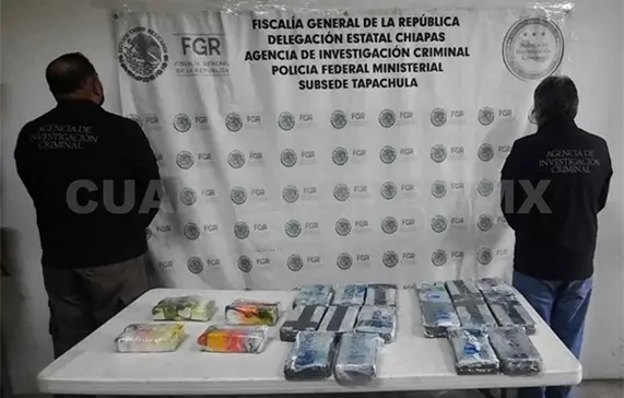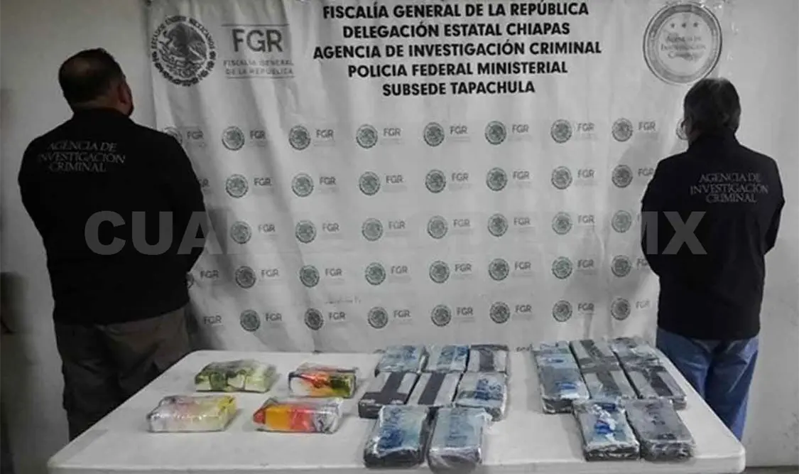 La Fiscalía General de la República (FGR) en Chiapas, a través de la Fiscalía Especializada de Control Regional (Fecor), inició una investigación en contra de quien o quienes resulten probables responsables por el delito contra la salud, previsto y sancionado en el Código Penal Federal, luego de decomisar 14 envoltorios de plástico y 16 paquetes con polvo blanco con las características de la cocaína.