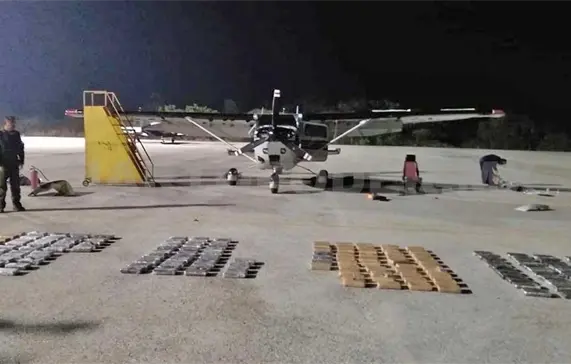 Los uniformados con la ayuda de caninos descubrieron en compartimentos de la aeronave que estaban ocultos decenas de paquetes confeccionados con bolsas de plástico, cuyo contenido tenía las características de polvo blanco, como la droga conocida como cocaína, que al ser pesados arrojaron un peso de más de 150 kilogramos.