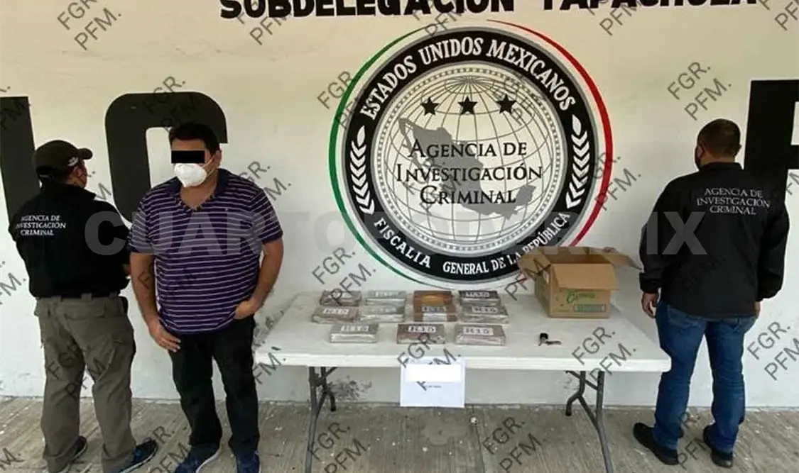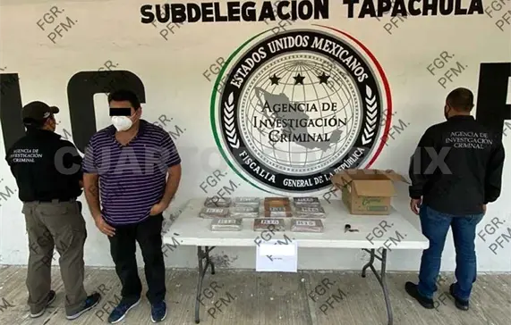 La Fiscalía General de la República (FGR) en Chiapas inició carpeta de investigación por un delito contra la salud, previsto y sancionado por el Código Penal Federal, en su modalidad de transporte de narcótico, luego de asegurar a una persona y aproximadamente 11 kilos de cocaína.