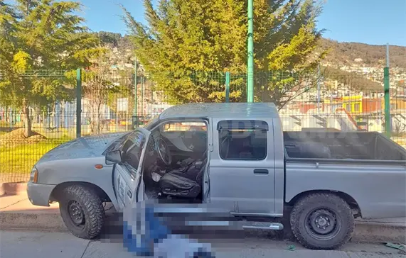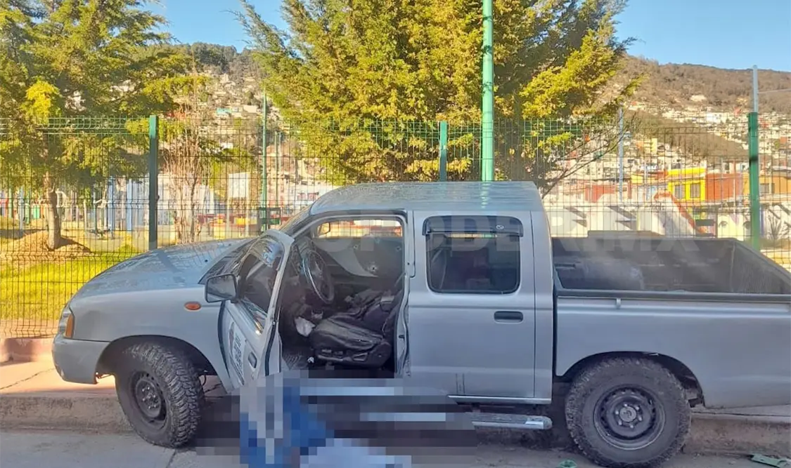 Elementos de la Policía Municipal llegaron a los pocos minutos y tuvieron a la vista a un sujeto tirado al pie de una camioneta marca Nissan tipo Frontier color gris, la cual no contaba con placas de circulación.