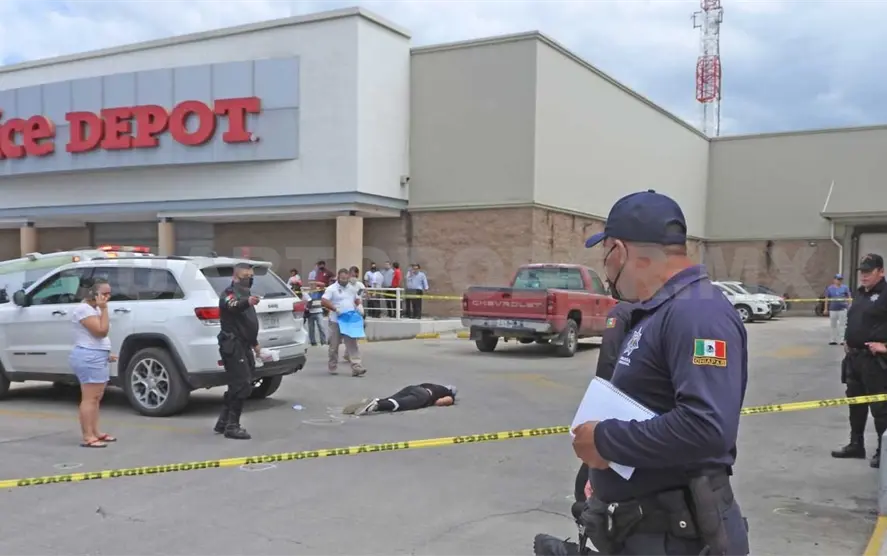 Una cinta de acordonamiento decoró el estacionamiento, donde diversos curiosos se arremolinaron junto al cadáver que yacía decúbito supino en un charco de sangre; a un costado se encontraba su hermana Guadalupe, quien lo acompañaba al momento del ataque.