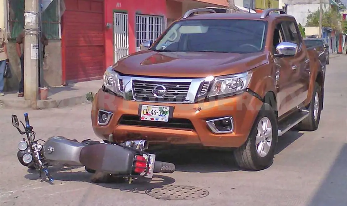 Un motociclista fue atropellado por una camioneta, La culpa fue del joven al no respetar la preferencia del automóvil. El lesionado fue valorado por paramédicos del Cuerpo de Bomberos, pero no fue trasladado.