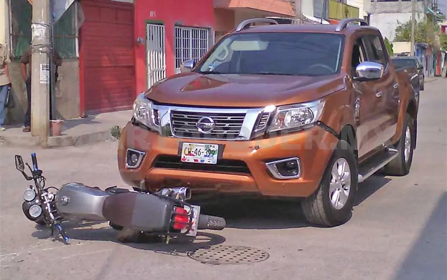 La camioneta marca Nissan tipo Frontier, color café, modelo 2016, con placas de circulación CW-46399 del estado de Chiapas, era tripulada por Ezequiel Magdaleno Calvo. Circulaba de poniente a oriente sobre la avenida referida.