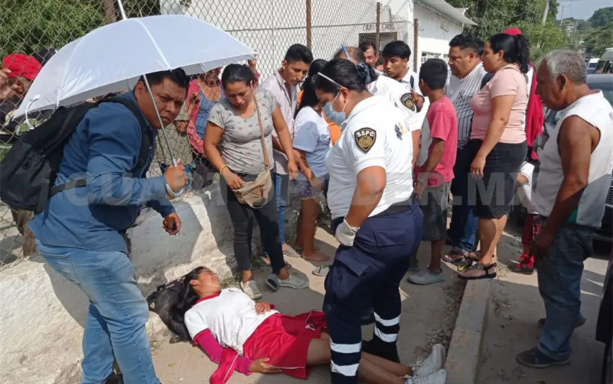 Con una probable fractura en la cadera acabó una estudiante de telesecundaria luego de ser embestida por un estudiante del Cobach en la calle San Marcos y avenida El Jolote, en la colonia Los Pájaros y frente las inmediaciones del panteón Jardín San Marcos de la capital Tuxtla Gutiérrez.