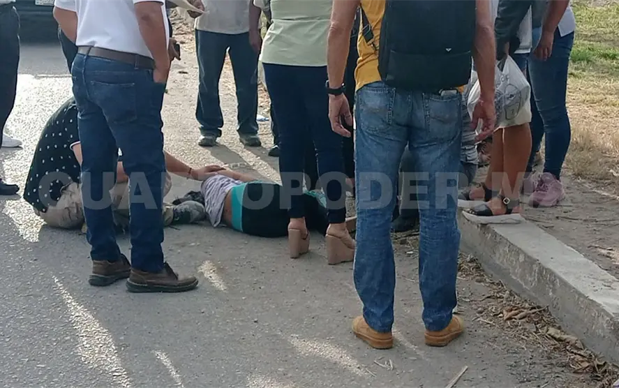Las llantas traseras le terminaron pasando literalmente encima a la menor, la cual quedó tendida sobre la carpeta asfáltica, mientras que la madre quedó sobre el andén central.