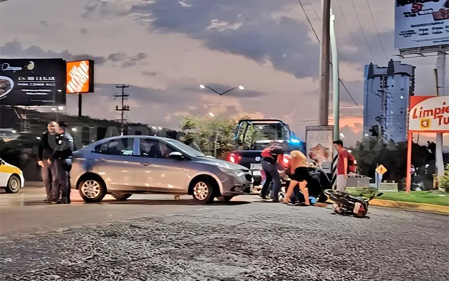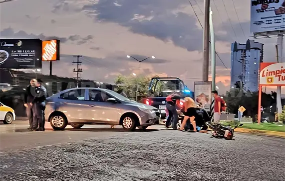 Con múltiples lesiones en las extremidades terminó un joven motociclista luego de ser embestido por un automóvil particular sobre el libramiento Sur, a la altura de la tienda de materiales Home Depot, en la ciudad de Tuxtla Gutiérrez, la noche del viernes.