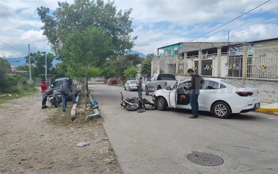 De inmediato se presentaron al lugar. Observaron que se trataba del choque entre una automovilista y una pareja a bordo de una motocicleta. Curiosamente la peor parte se la llevó la fascia delantera del sedán, pues se desprendió por el fuerte golpe.