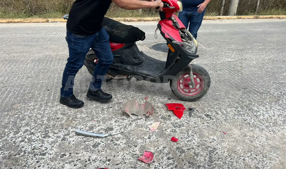 De igual manera ayer a las 14:30 horas el conductor de un Mazda de color negro, embistió a una joven que circulaba en una motoneta sobre la avenida principal del fraccionamiento Las Tinajas.