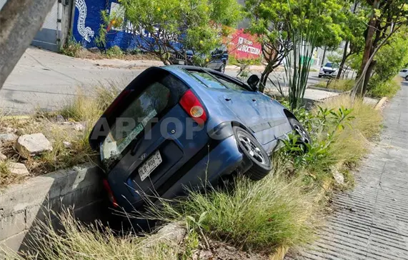 Una mala maniobra hizo que la conductora de un automóvil compacto terminara cayendo en el interior de un canal de aguas residuales sobre el bulevar Tzimol, entre las avenidas Toniná y Pitágoras de la colonia Centenario Tuchtlán, en la capital Tuxtla Gutiérrez, el lunes por la mañana.