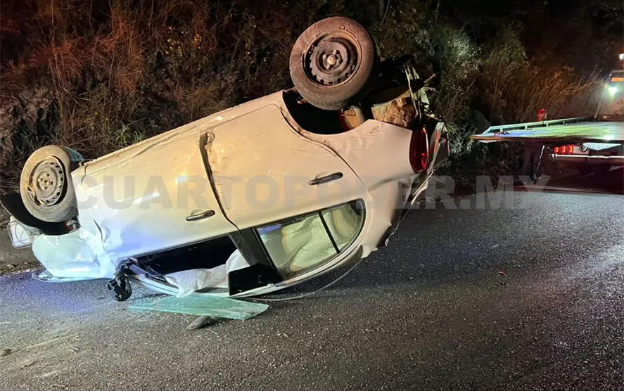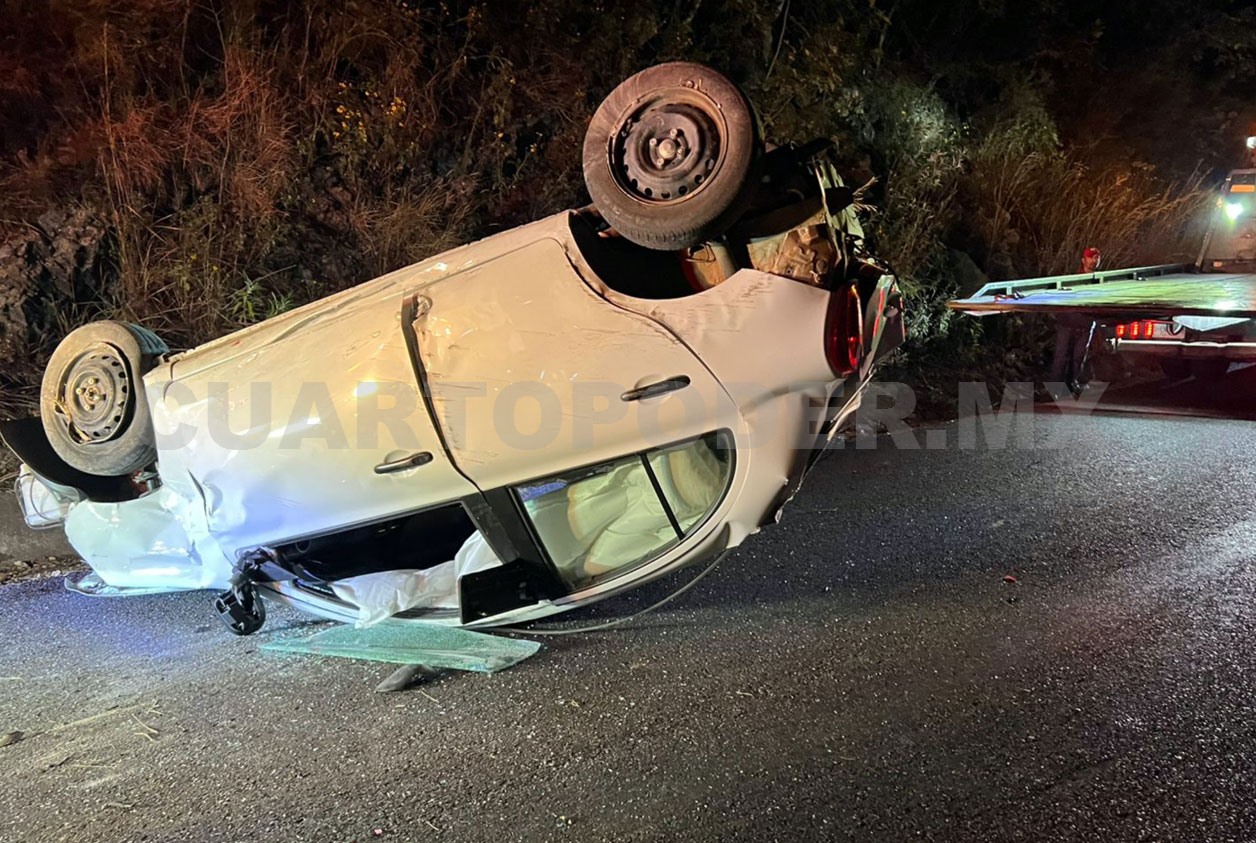 Sobre la carretera circulaba un automovilista a bordo de un Nissan March de color blanco cuando perdió el control al llegar a una curva —se presume que fue por falta de precaución y el exceso de velocidad— por lo que terminó Posteriormente, chocó contra el paredón para después terminar sobre el toldo con las llantas hacia arriba.