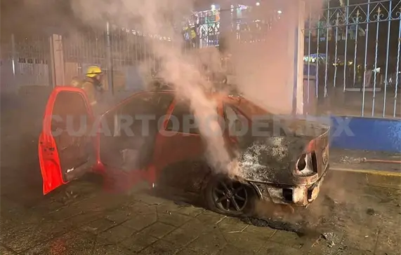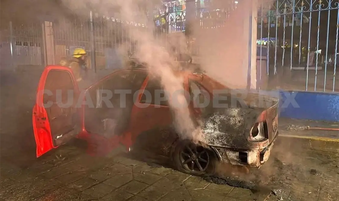Un automóvil fue consumido por completo por el fuego, esto durante la noche del miércoles en el barrio San Diego, en la zona norte del municipio de San Cristóbal de Las Casas.