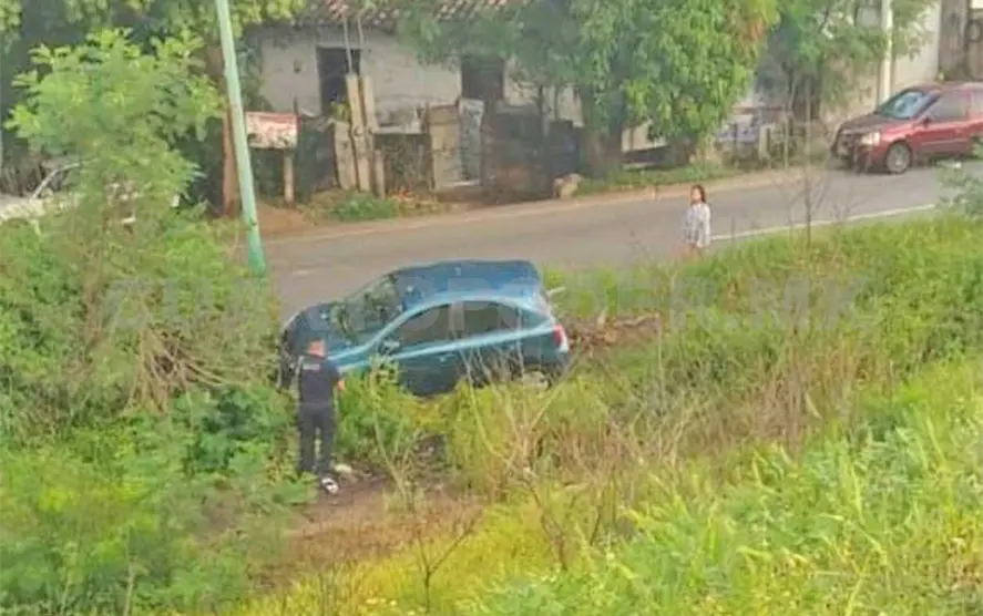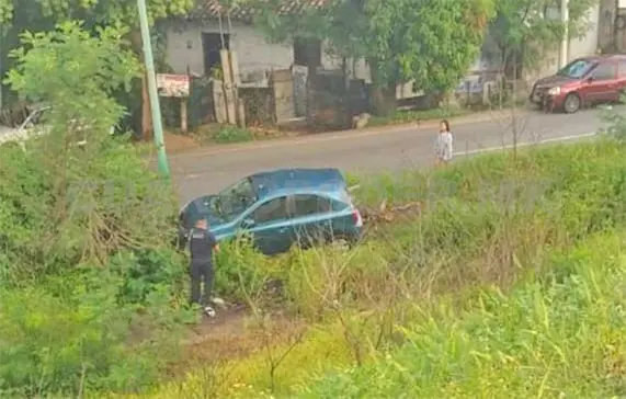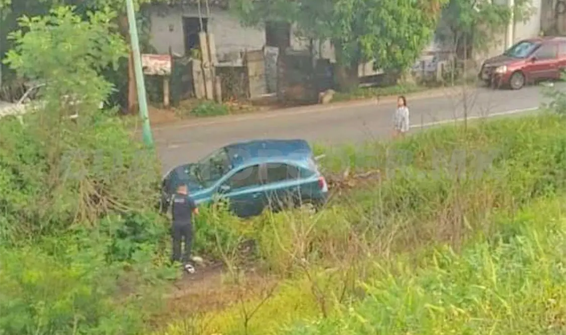 Entre la maleza yacía un automóvil compacto Nissan March de color verde. Se indicó que no localizaron al conductor, quien huyó antes del arribo de las autoridades para no hacerse responsable del accidente.