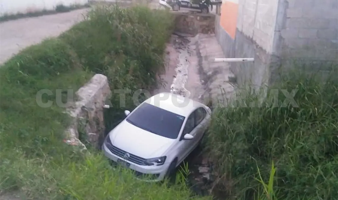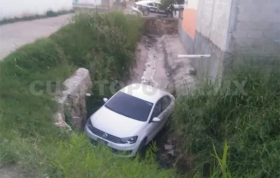 De acuerdo con información recabada, debido a las obras realizadas sobre las calles de la colonia, José Eduardo Trujillo Pérez -conductor de un vehículo marca Volkswagen tipo Vento, color blanco, con placas de circulación DSR-82-54- se echó de reversa sin percatarse del canal de aguas negras del lugar, cayendo al fondo y quedando atrapado.