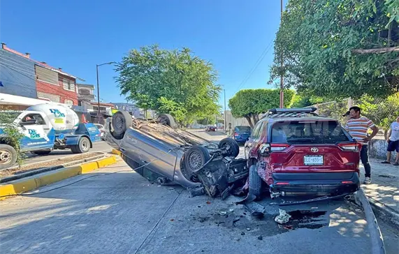 A pesar de lo aparatoso de un accidente en donde un automóvil terminó volcado, no hubo personas lesionadas, aunque los daños materiales ascendieron a varias decenas de miles de pesos, esto en el municipio de Tapachula.