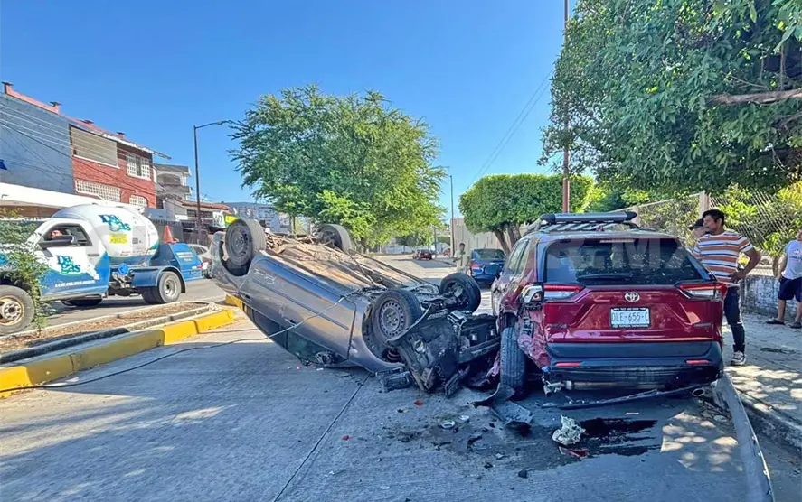 El percance se registró sobre la 18.ª calle Oriente al momento en que un Mazda de color gris se desplazaba de poniente a oriente al parecer a exceso de velocidad, lo que hizo que la conductora perdiera el control, cruzara el camellón central, volcara e impactara contra una camioneta Toyota de color rojo, la cual se encontraba estacionada.