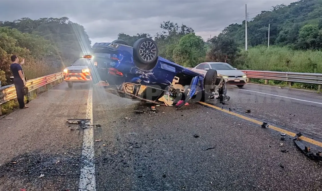 Mencionaban que sobre el kilómetro 75 había un vehículo de reciente modelo de color azul con las llantas hacia arriba, en el cual había personas aparentemente lesionadas dentro.