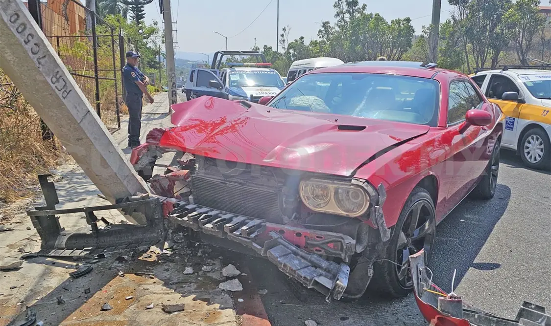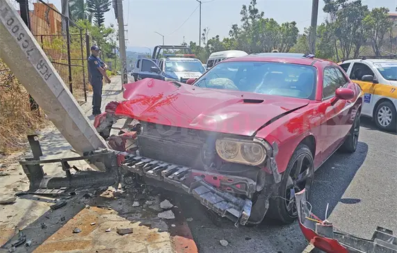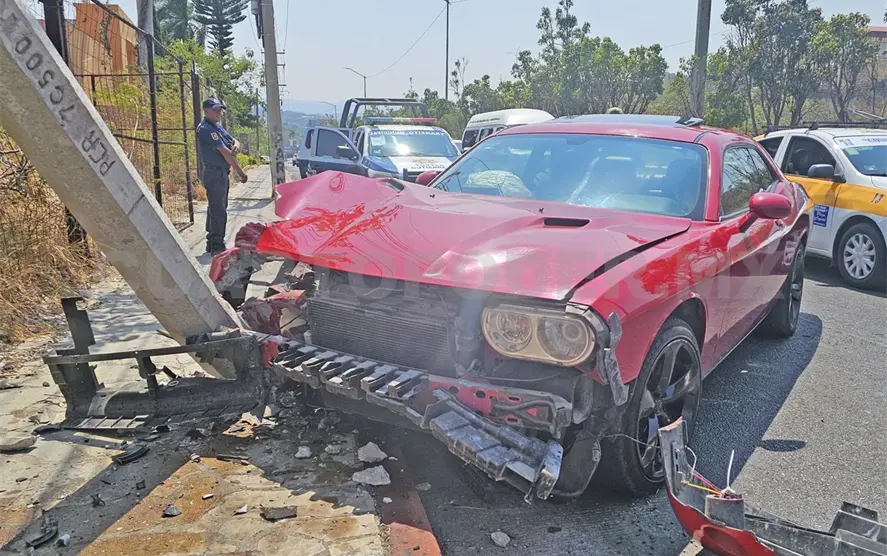 Se trataba de un automóvil particular Ford Mustang de color rojo que estaba estrellado contra un poste de concreto. El conductor abandonó la unidad y escapó de la zona antes de la llegada de las autoridades.