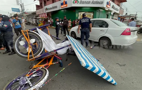 Con diversas lesiones resultó una persona del sexo femenino que viajaba como pasajera de un triciclo que se estrelló contra un vehículo en el centro de la población de Cacahoatán, lo que movilizó a los cuerpos de emergencia y de seguridad.