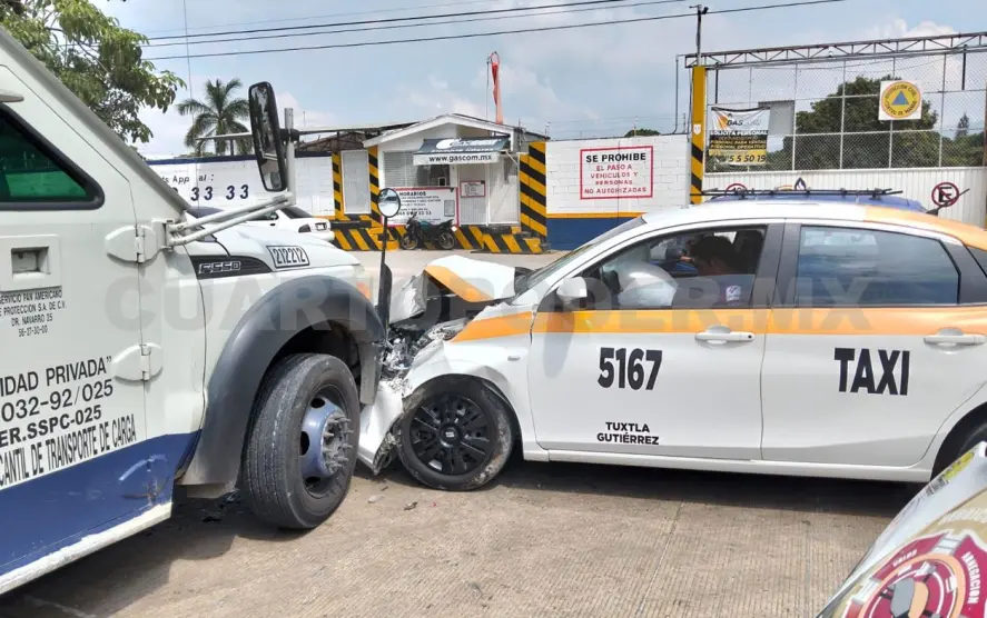 Al llegar corroboraron el reporte y les informaron que un automóvil de transporte público en modalidad de taxi y una unidad de traslado de valores habían tenido el encontronazo, debido a un presunto corte de circulación.